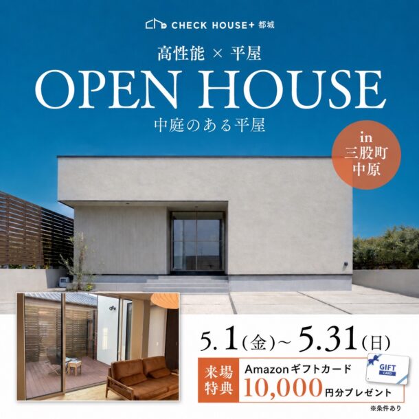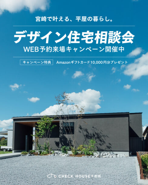 イベント情報 チェックハウスプラス 都城 お知らせ CATEGORY カテゴリー イベント情報 チェックハウスプラス 都城 お知らせ 2026. 04.30 【宮崎で平屋を建てるなら】平屋OPEN HOUSE 2026. 04.29 【デザイン住宅相談会】WEB来場予約キャンペーン 2026. 04.13 【はじめての平屋相談会】WEB来場予約キャンペーン 2026. 01.29 宮崎で平屋を建てるならチェックハウス都城|平屋モデルハウス見学会 2025. 11.13 “毎日が、リゾートになる。”デザイン住宅相談会
