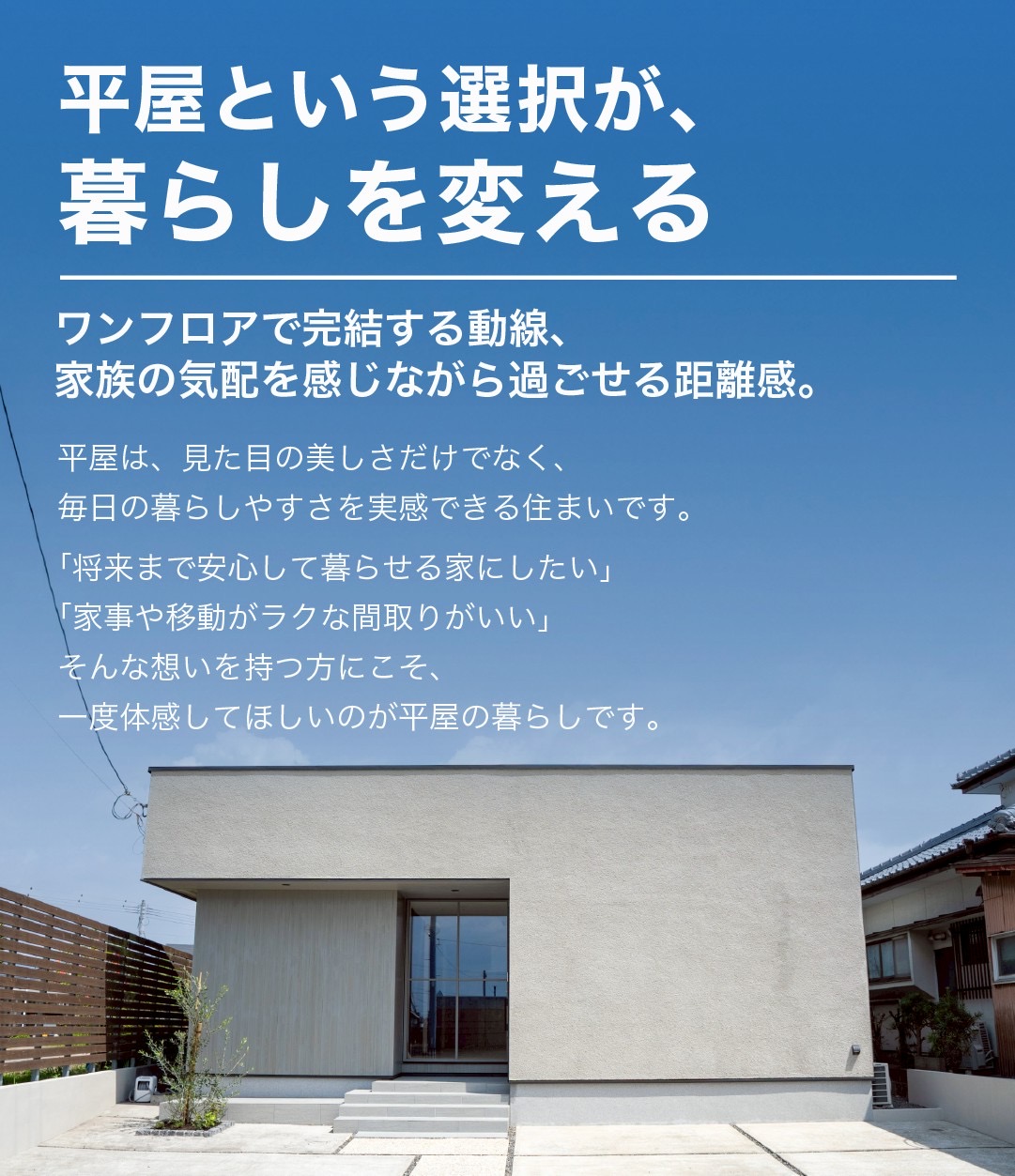平屋住宅をご提案しています。