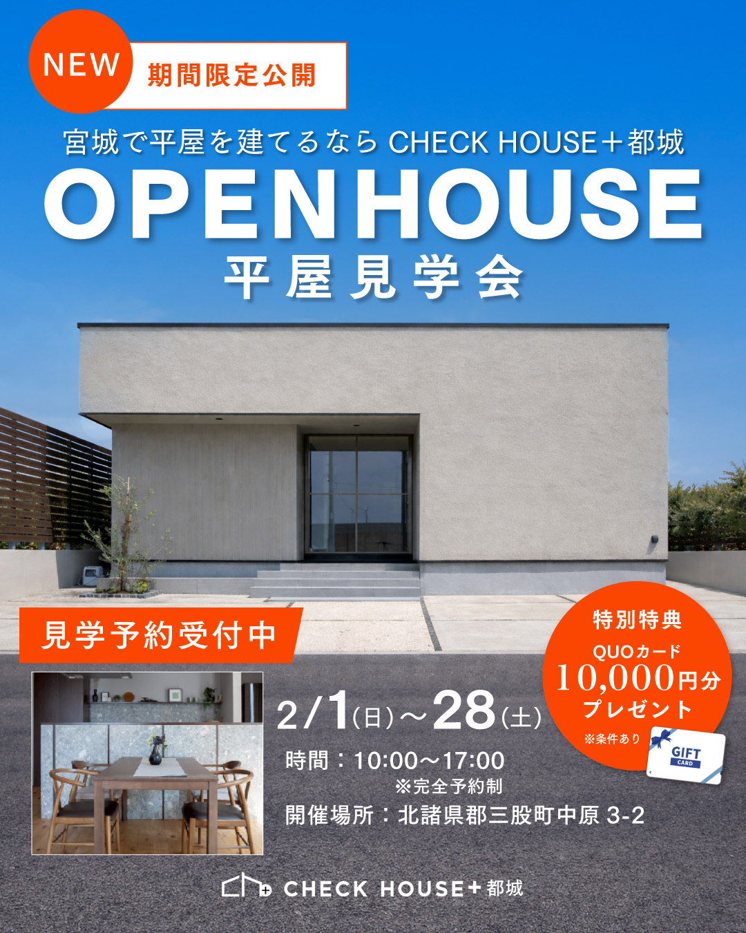 ご予約・お問い合わせはチェックハウスプラス都城まで